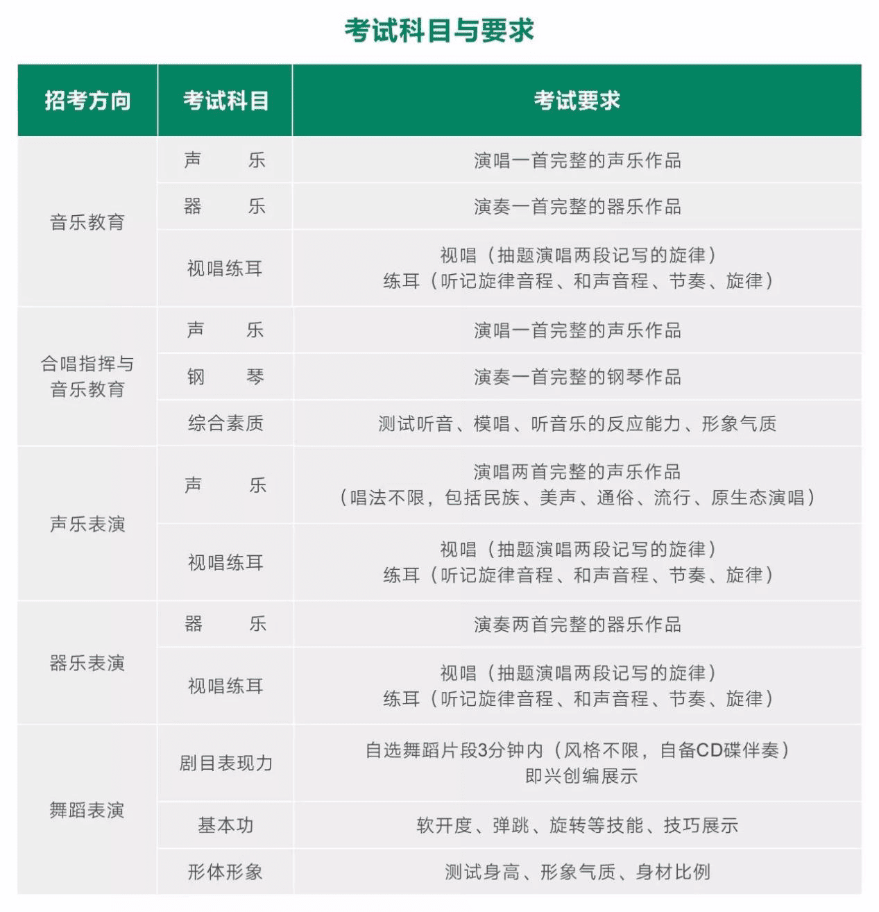 2、声乐表演、合唱指挥与音乐教育方向:男生1.70米(含)以上,女生1.58米(含)以上。