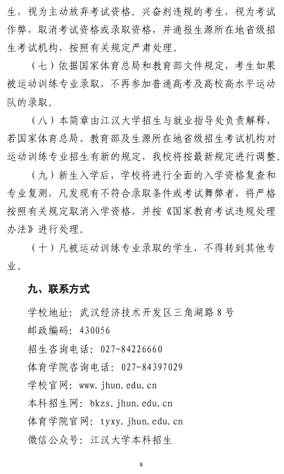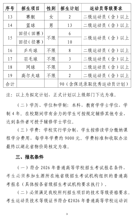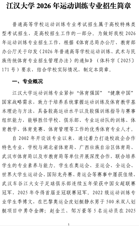 江汉大学2026年运动训练专业招生简章